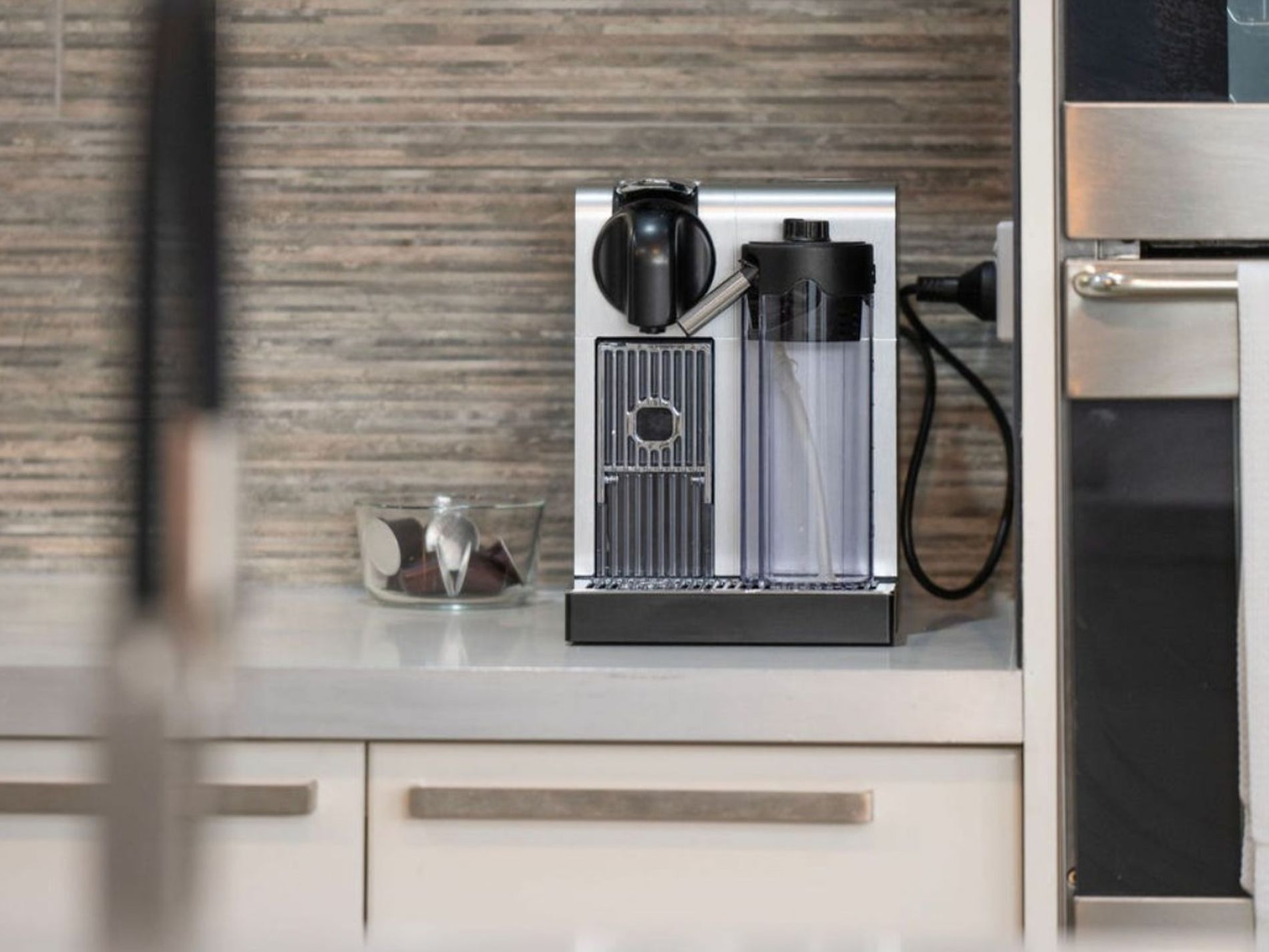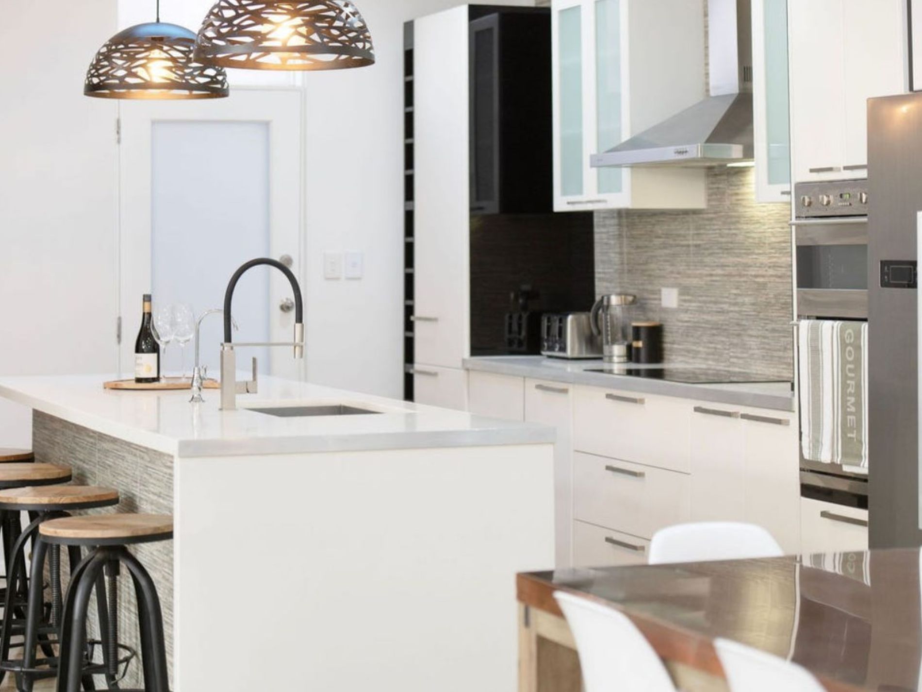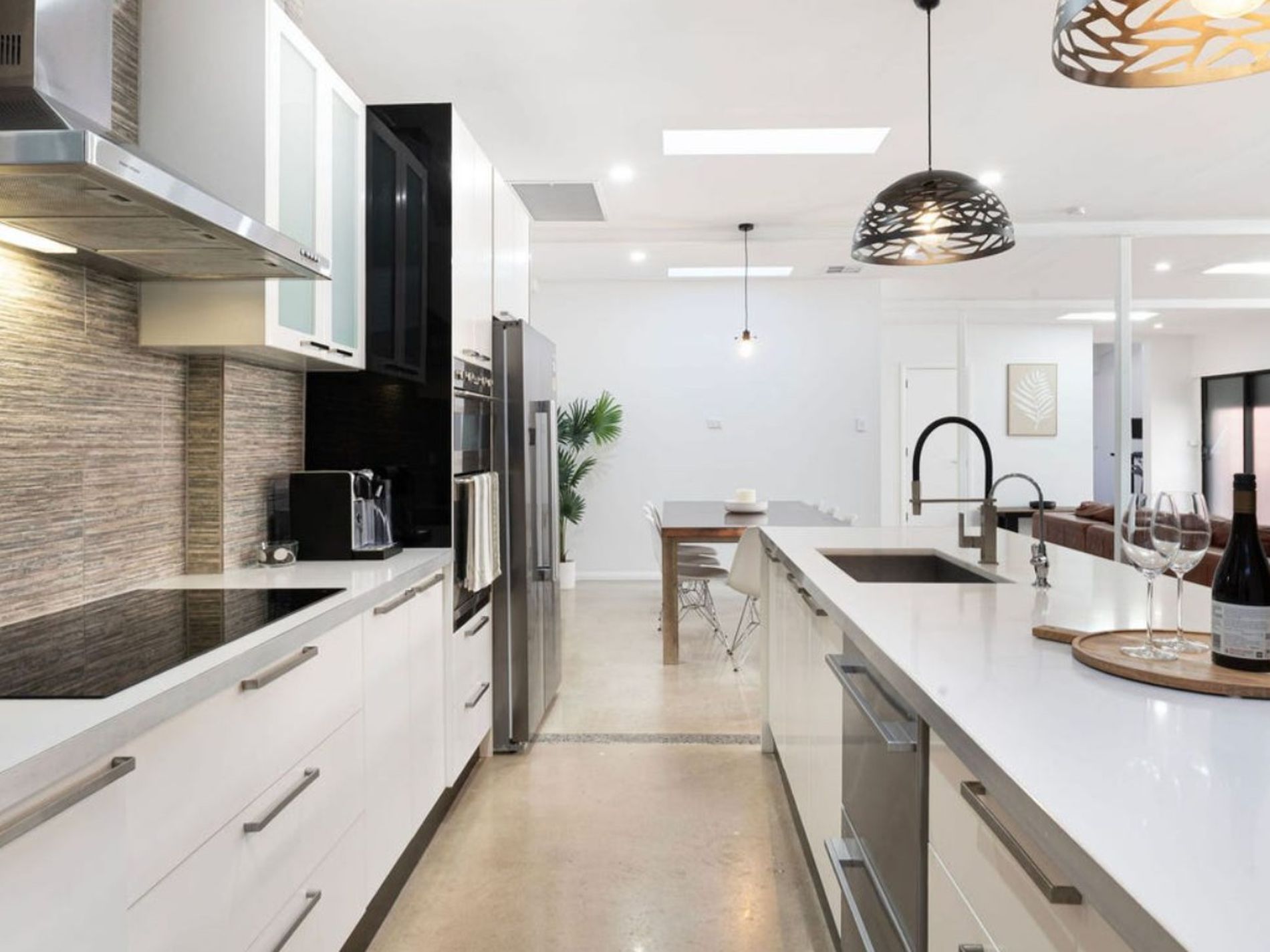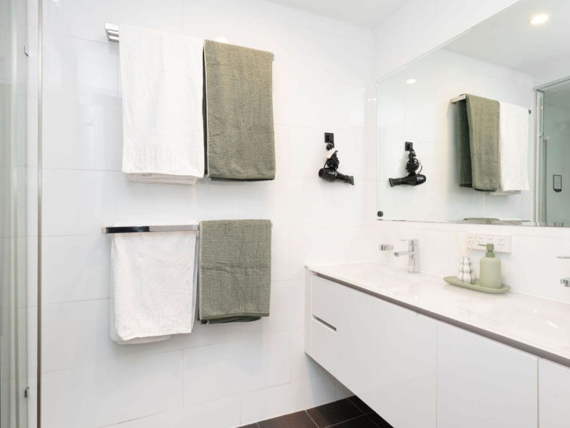 Enjoy the open-plan living area with a leather sofa, large-screen TV, and cozy gas fireplace. The fully equipped kitchen boasts stone benchtops, stainless steel appliances, ducted air conditioning, a Nespresso coffee machine, and all the essentials.